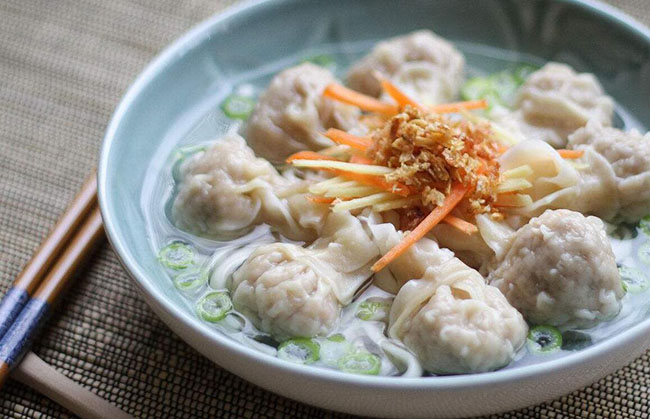 餛飩(漢語拼音:hún tún 或者h(yuǎn)ún tun 輕聲;粵語:w?n3 t?n1,音同“云吞”;山東話:hún dùn;英文名:wonton)是中國民間傳統(tǒng)面食之一,用薄面皮包餡兒,通常為煮熟后帶湯食用。源于中國北方。
